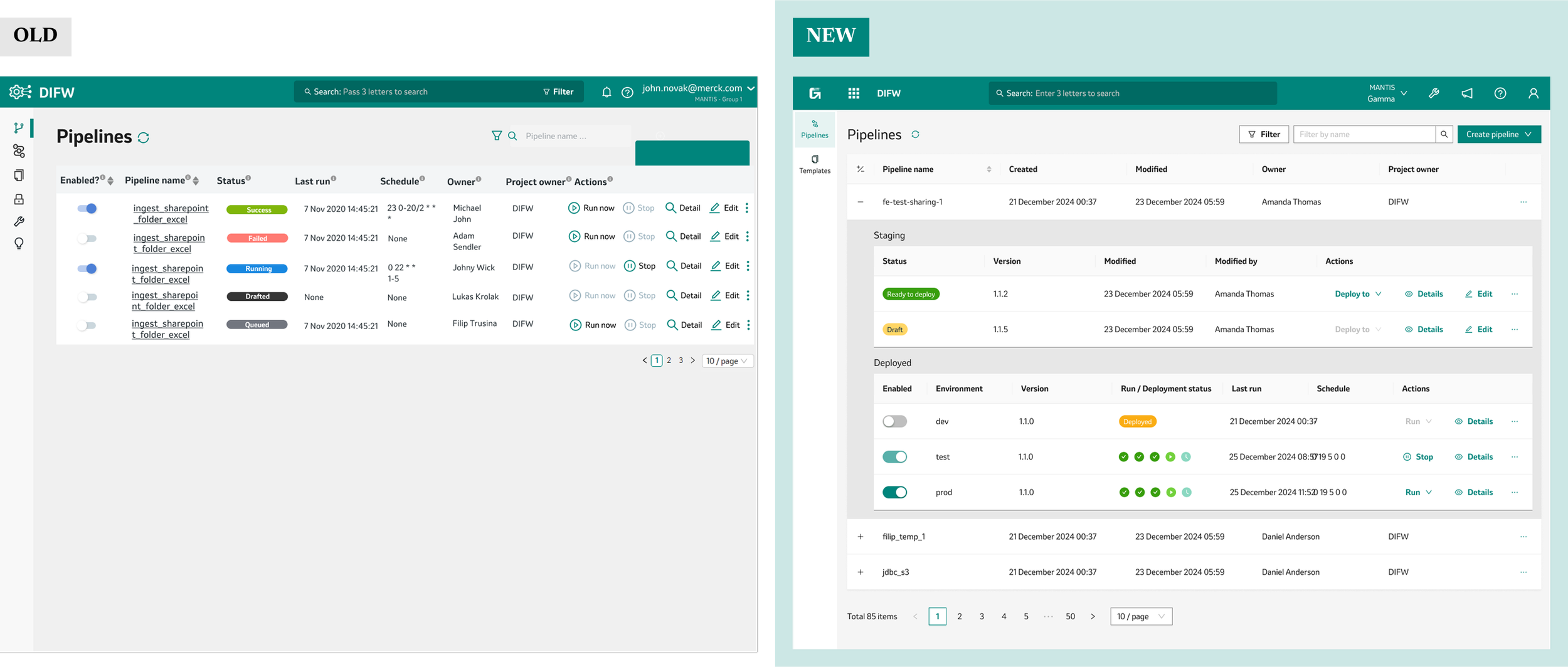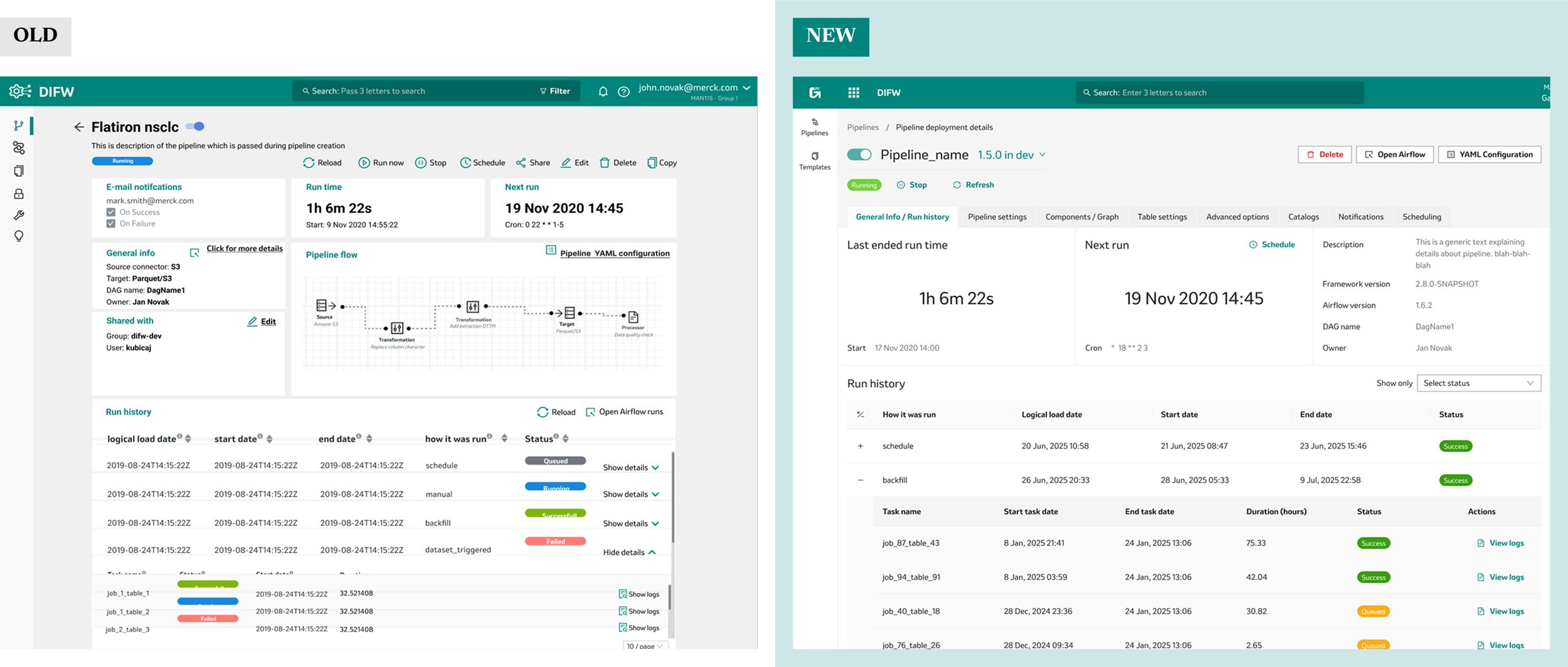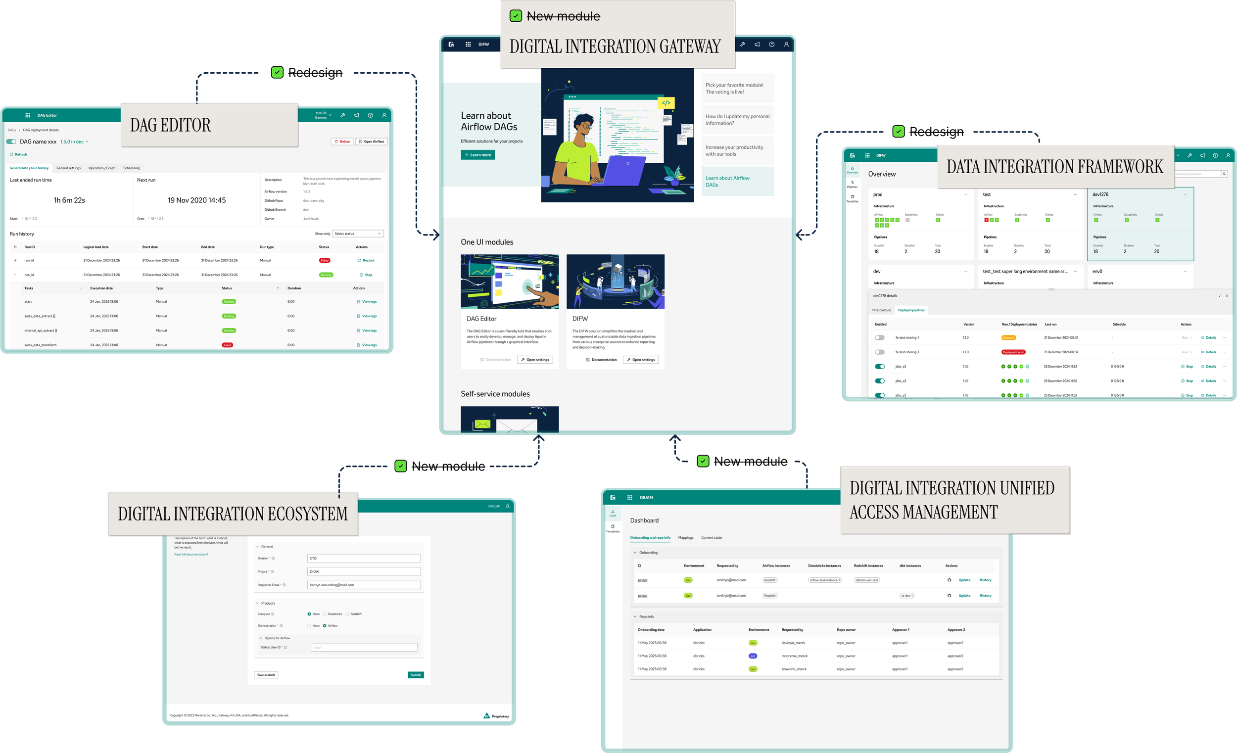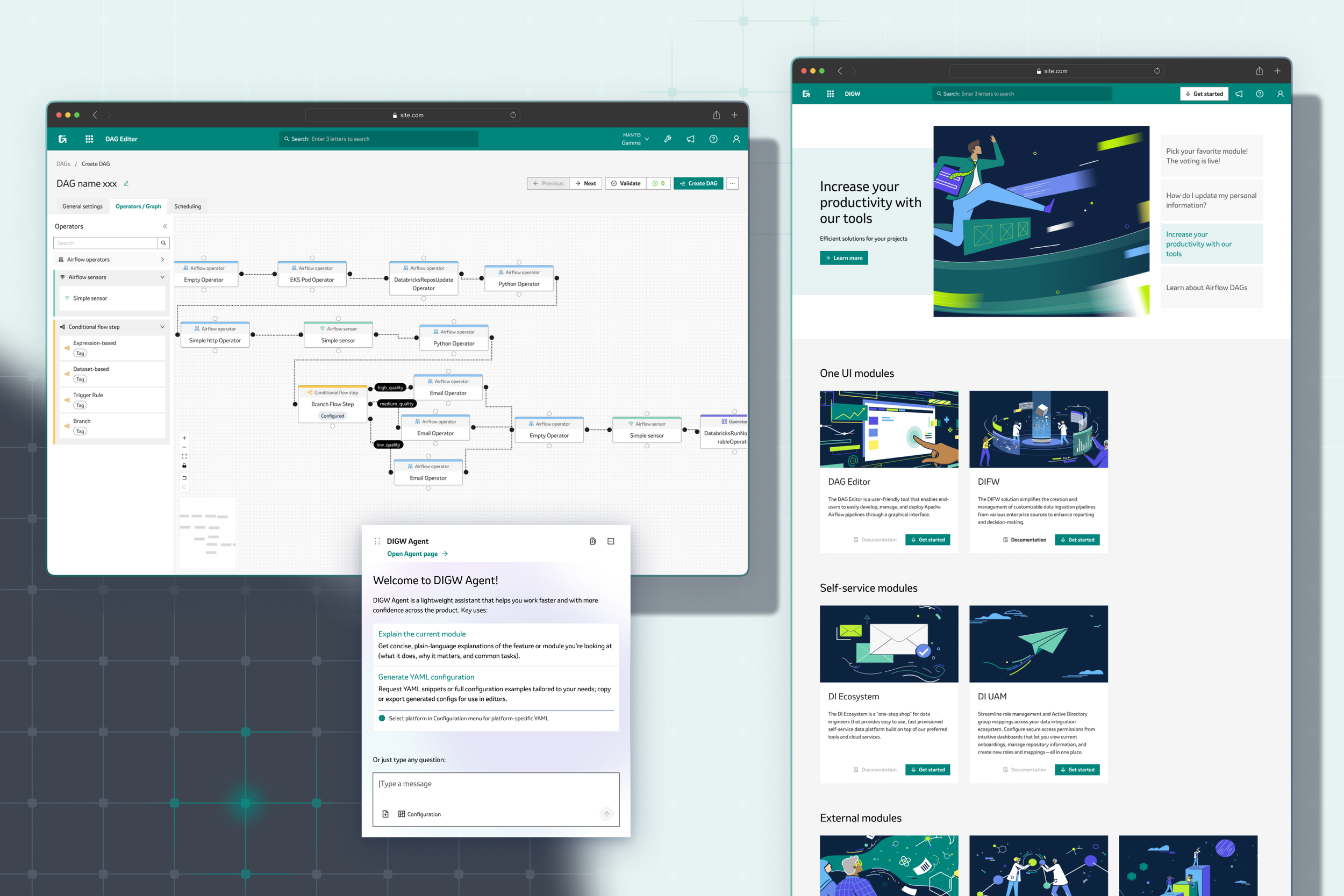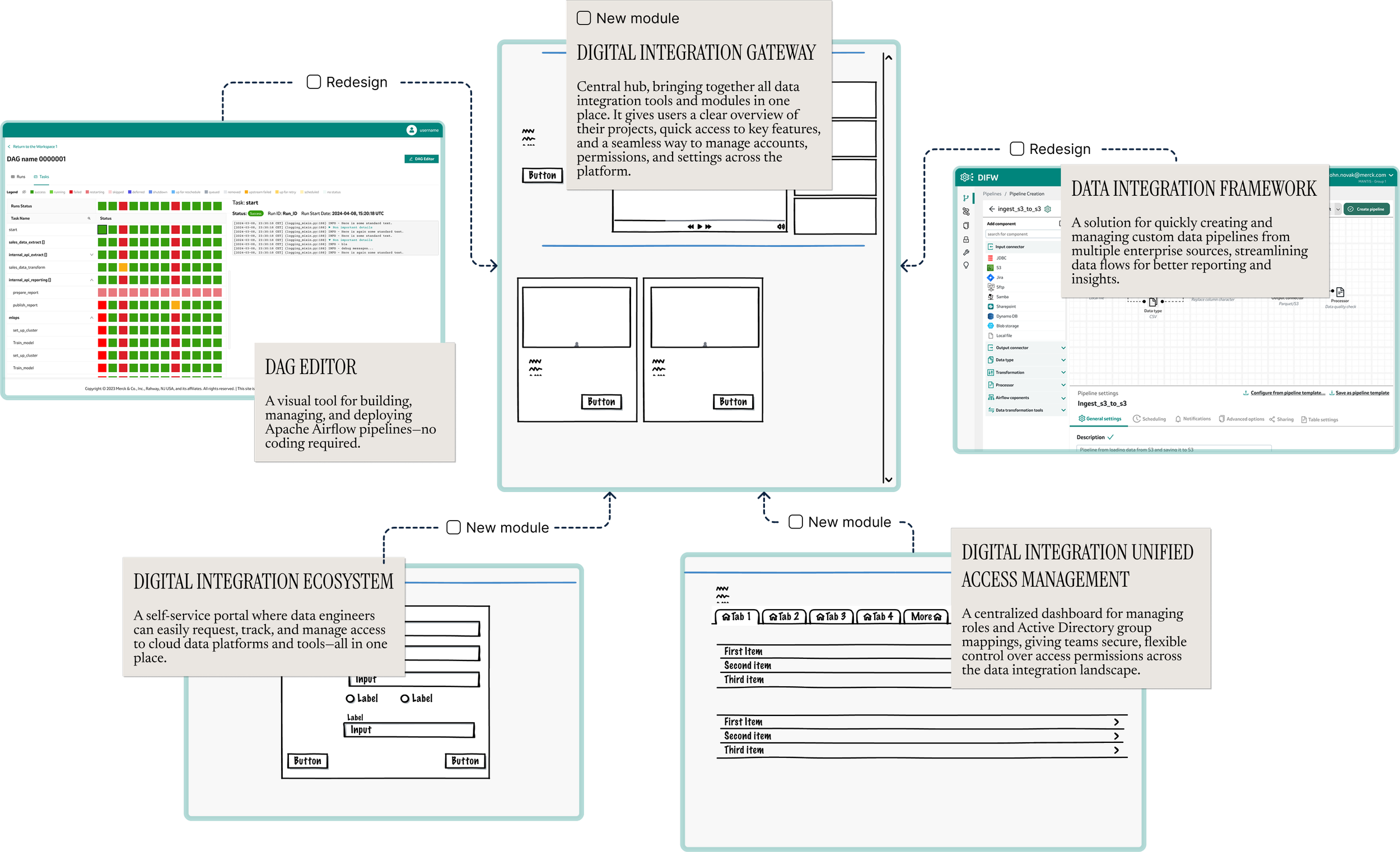 The DIGW (Digital Integration Gateway) initiative set out to solve a growing problem: organization relied on two powerful but disconnected modules—DIFW (Data Integration Framework), a data pipeline builder, and DAG Editor, a workflow orchestration tool. Both were essential for data engineers and technical admins, but each had its own interface, quirks, and learning curve. Users struggled with switching between systems, onboarding new team members, and keeping up with evolving business needs. As the company’s data landscape grew more complex, it became clear that a unified, user-friendly platform was needed—not just to modernize the look and feel, but to streamline workflows, introduce new features like AI-powered helpers, and bring everything in line with the company’s design system. The DIGW project was born to bring these modules together under one umbrella, making life easier for our technical teams and setting the stage for future growth.
