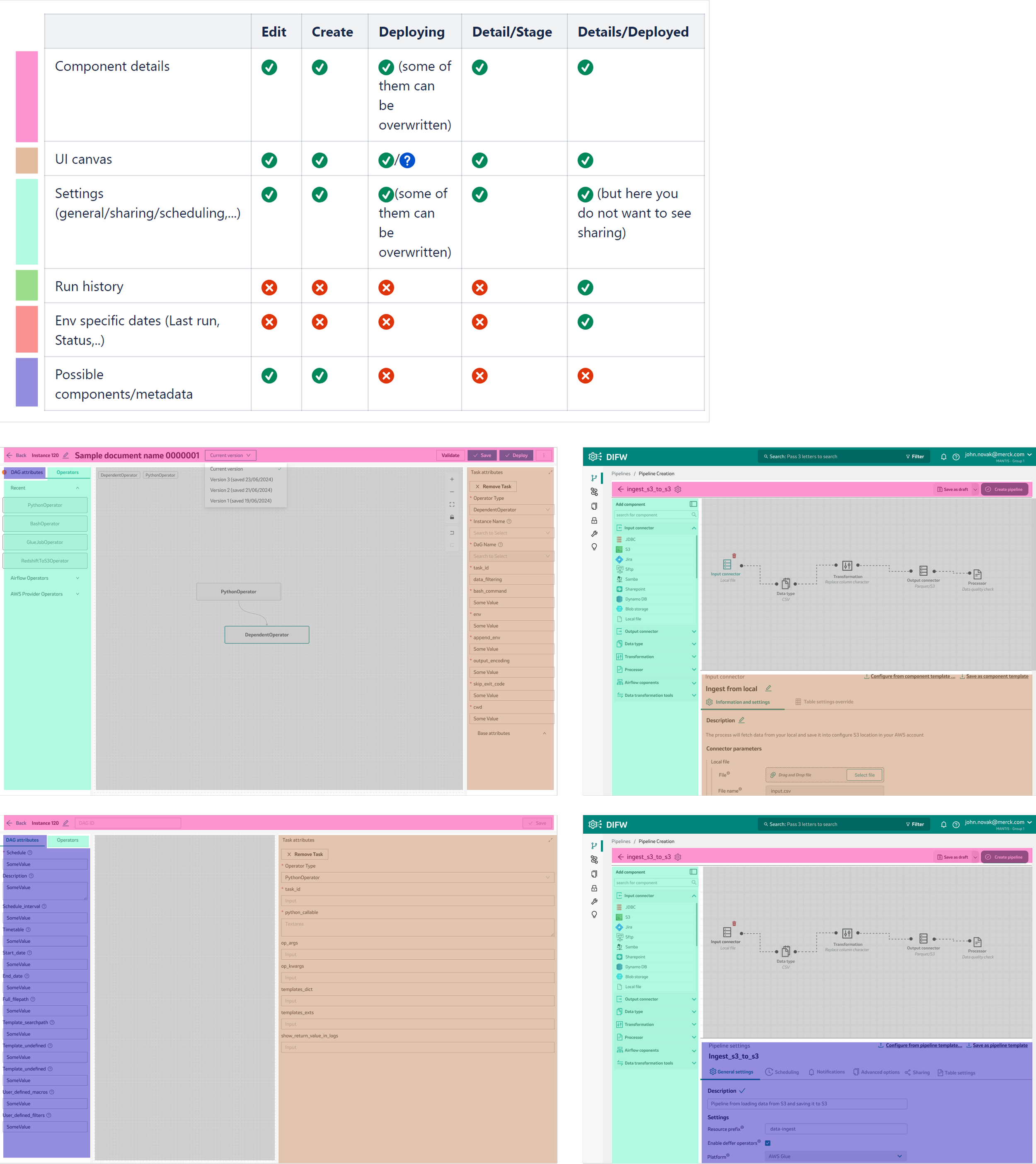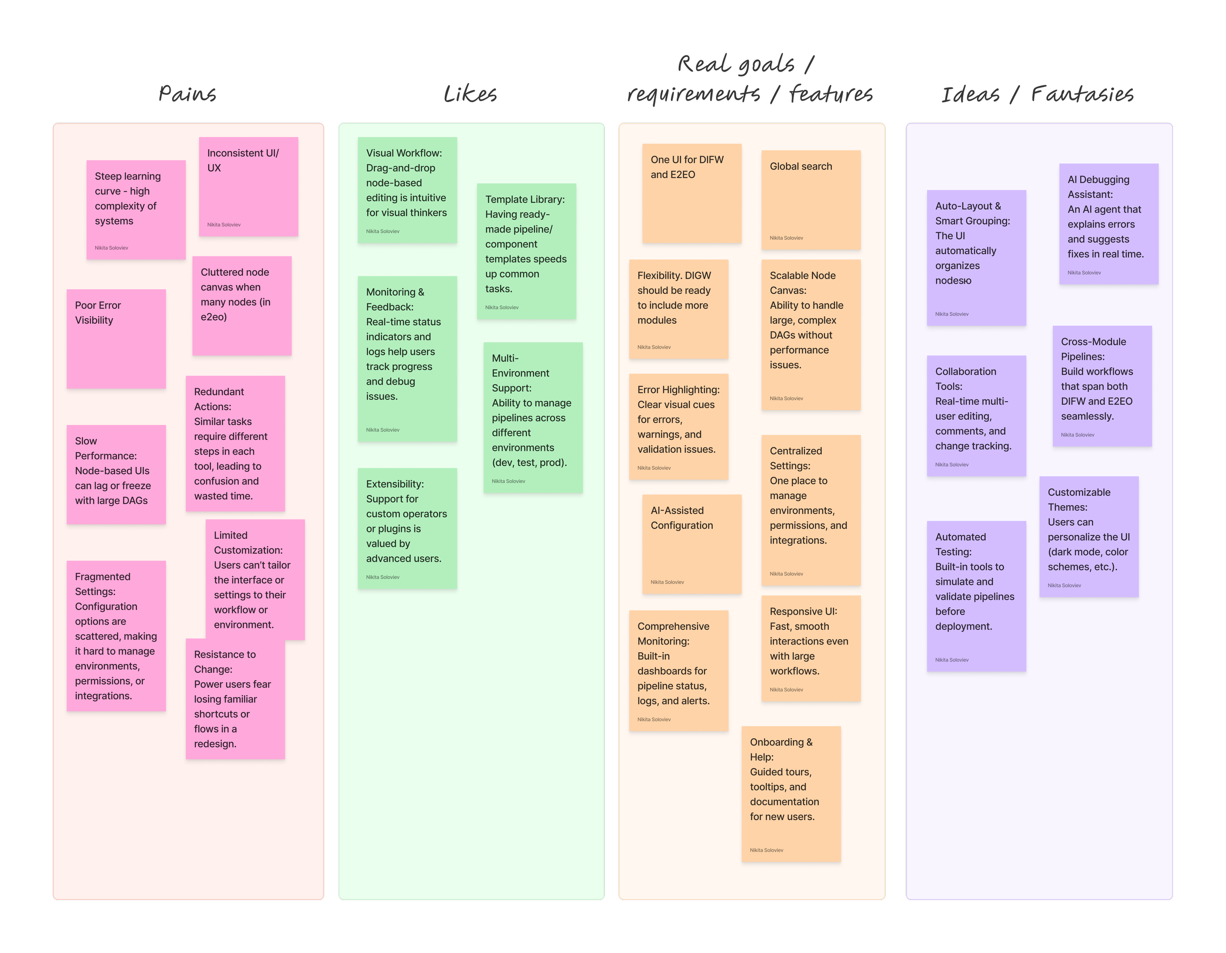 I ran usability tests with both experienced and new users, observing how they navigated the legacy DIFW and E2EO interfaces. I asked participants to perform typical tasks (like building a pipeline or troubleshooting errors) and encouraged them to verbalize their thoughts and feelings. This revealed specific usability issues, such as confusing navigation, slow error resolution, and inconsistent terminology.Workflow Analysis: